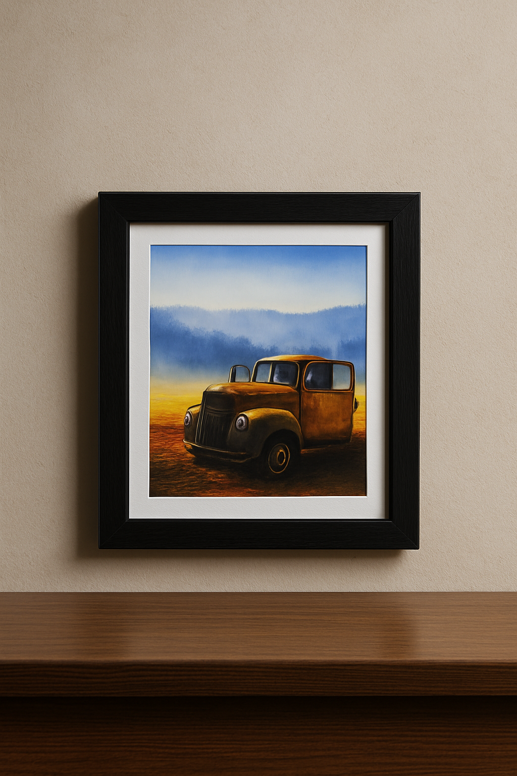 Bring a nostalgic touch to your interiors with this rustic small wall painting of a yellow vintage car set against a safari desert and mountain backdrop. The half-car design adds artistic depth, while earthy tones create a warm, timeless vibe. Ideal for bedrooms, lounges, or small spaces needing a unique old-world charm.